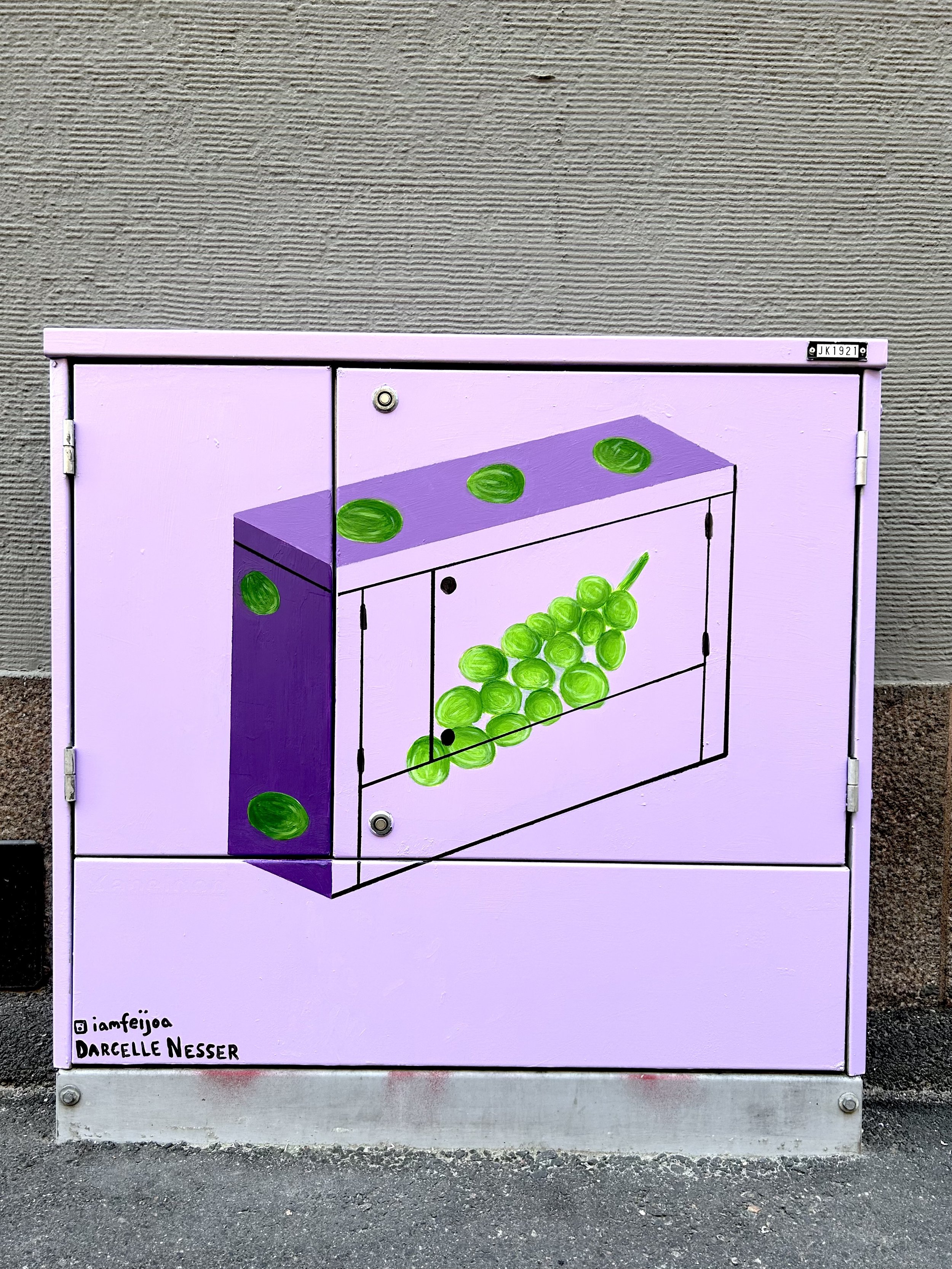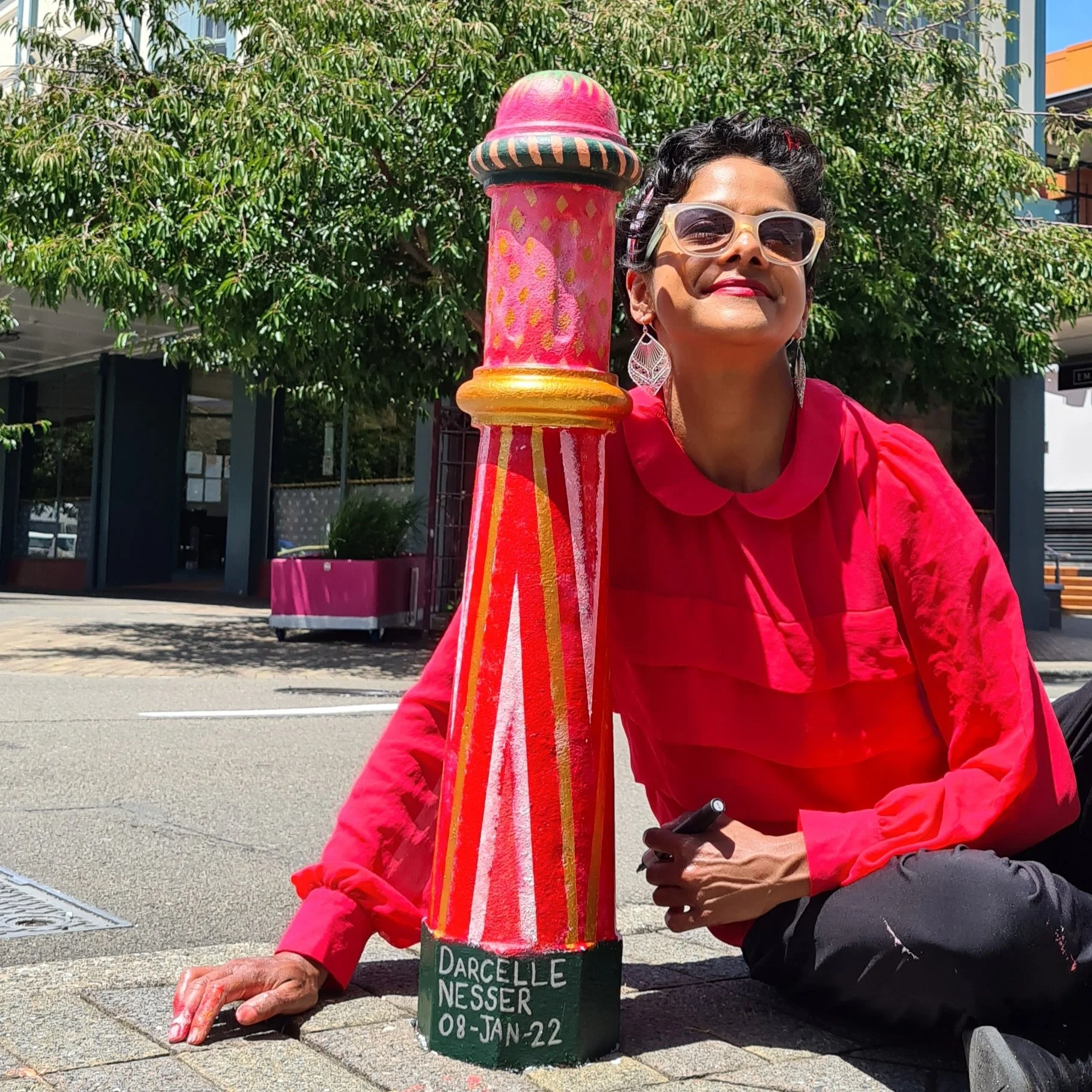 Darcelle received a list of 10 countries, and then spent the summer months of 2022/23 studying about the ancient textiles of these 10 countries and bringing them out in paint on the street.